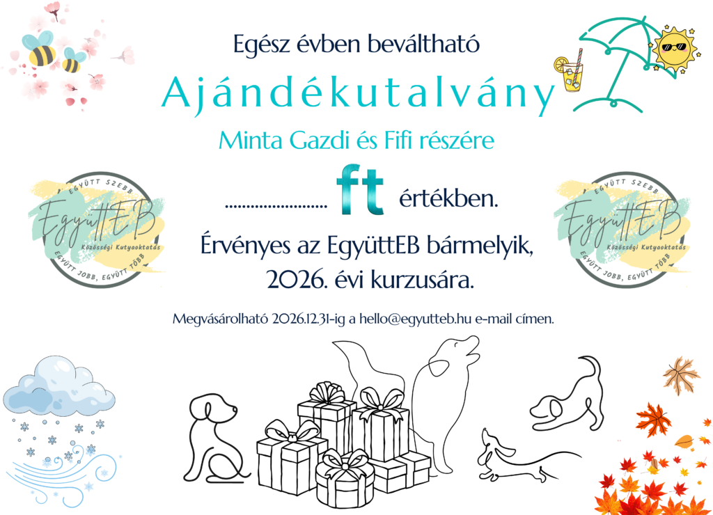 Ajándékutalványunkat az általad kiválasztott összegben (10-, 20-, 30 vagy 40 ezer forint) értékben tudod megvásárolni. A négy évszakos kártya 2026-ban bármelyik kurzusunkra beváltható! A karácsonyi kivitel pedig novembertől lesz elérhető.